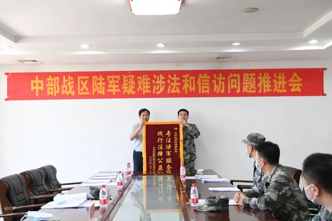 以此次推进会为契机,中部战区陆军机关专门向北京戎和律师事务所赠送锦旗、奖牌,并向参与活动的各位律师颁发证书。
